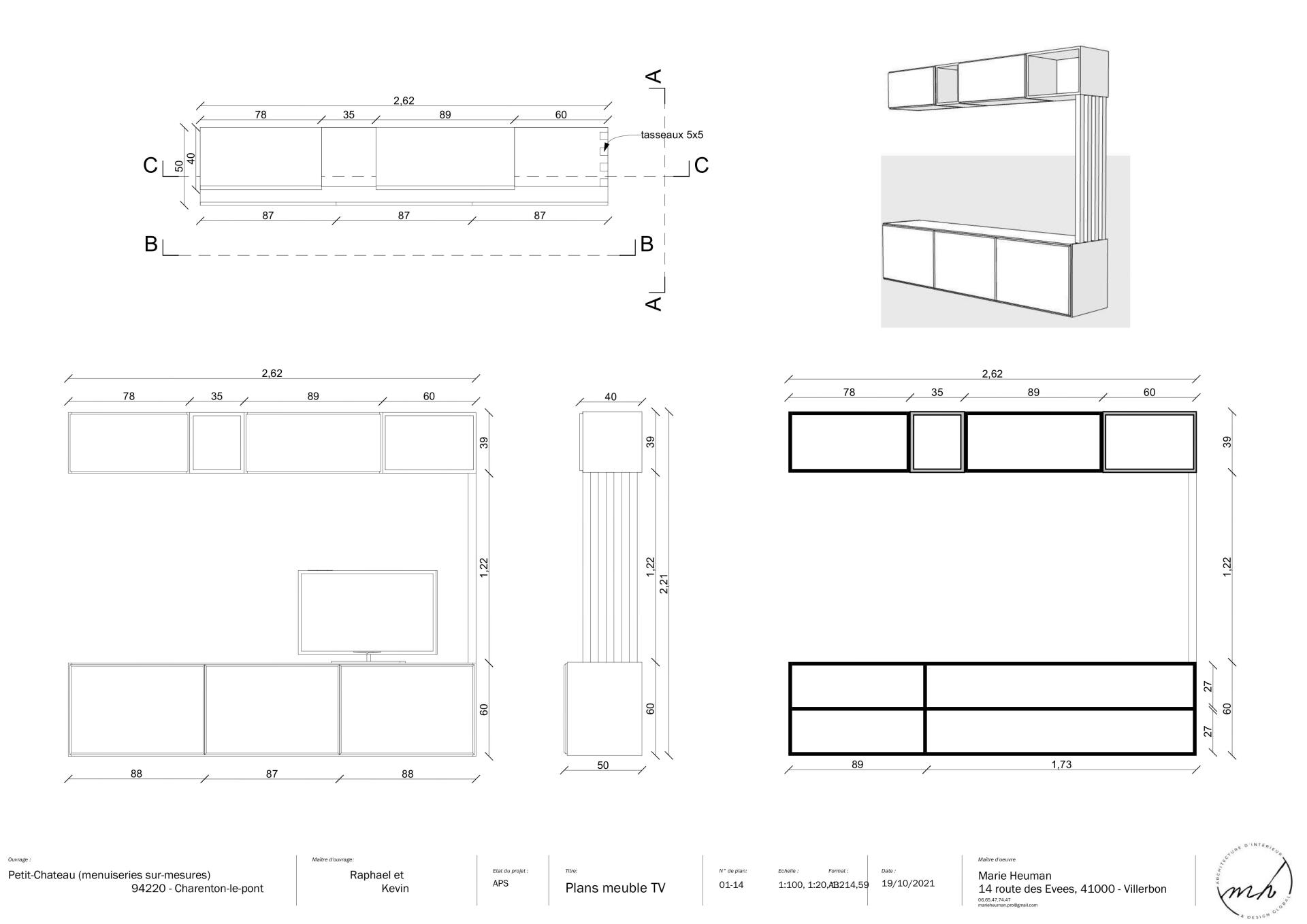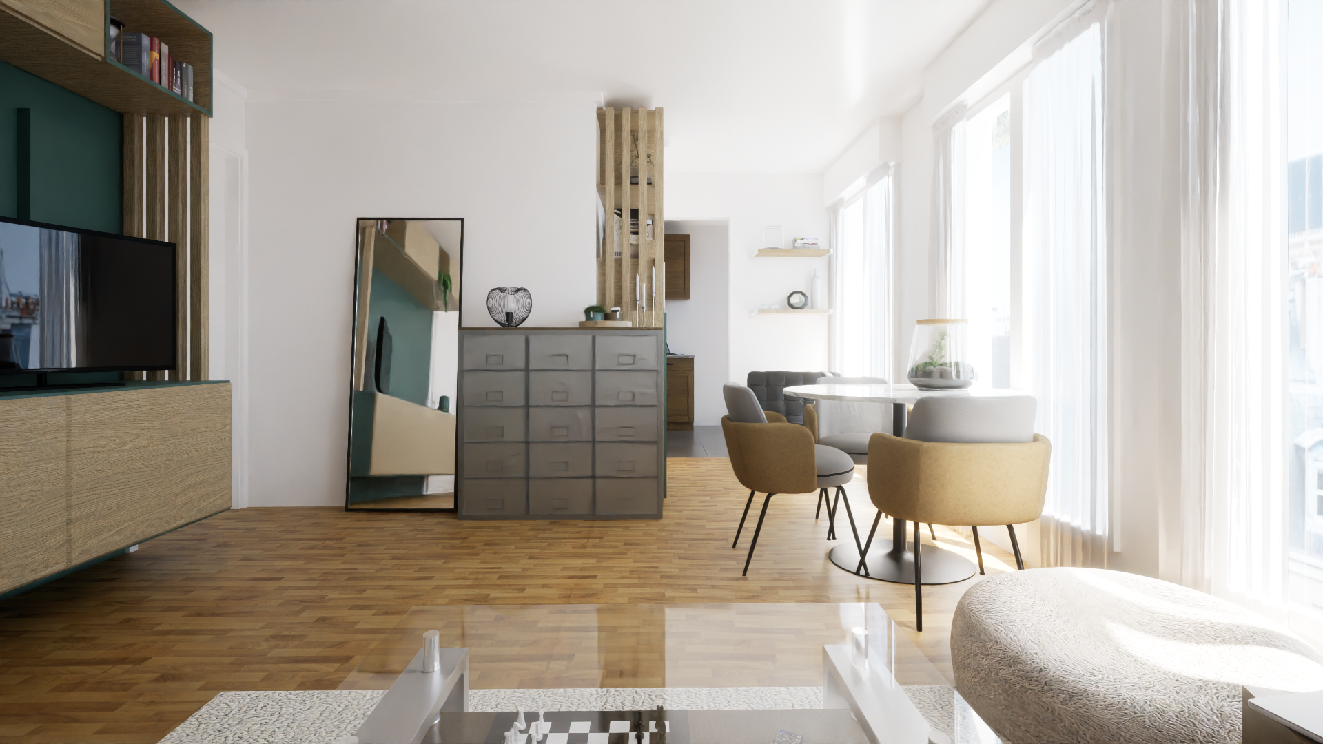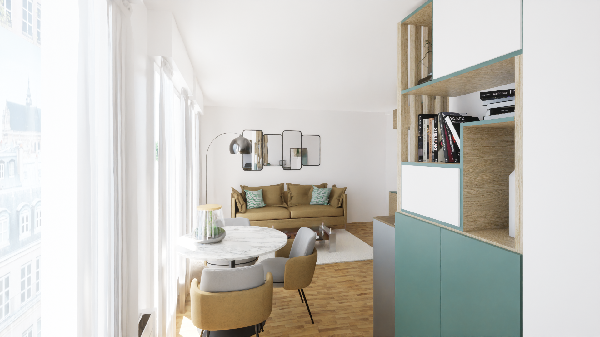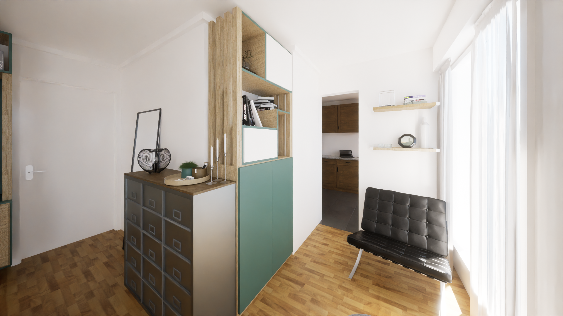La conception de menuiseries sur mesure a été au cœur de l'optimisation de cet appartement qui manquait initialement de rangements. Le choix s'est donc porté sur des meubles apportant du caractère et une touche personnalisée au logement.