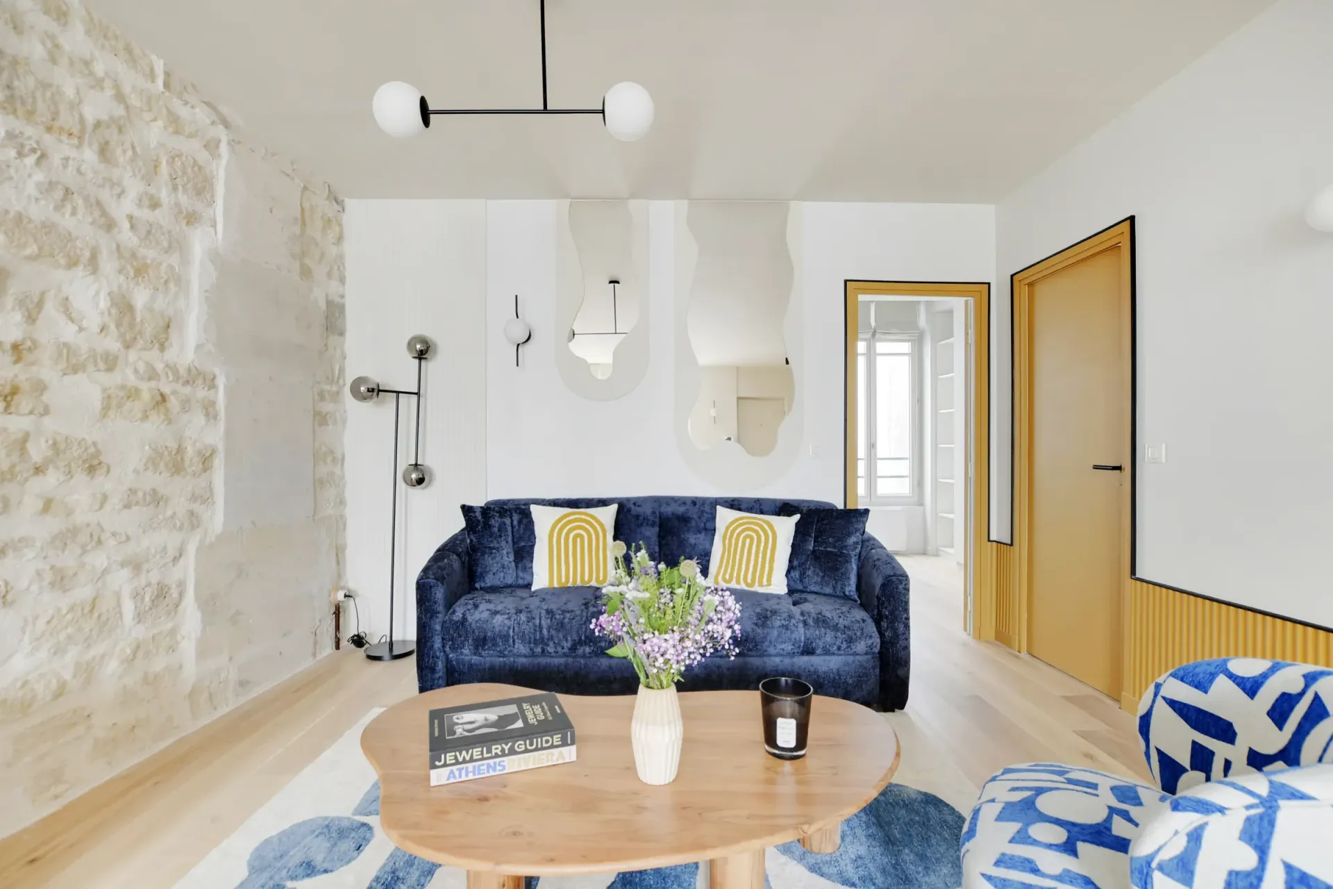 Dans cet appartement, chaque détail a été pensé pour offrir une expérience à la fois esthétique et pratique. Le mariage subtil des couleurs et des matériaux crée une ambiance raffinée et accueillante, parfaitement adaptée à un séjour confortable en plein cœur de Paris. Ce T2 devient ainsi bien plus qu’un simple lieu de passage ; il se transforme en un véritable chez-soi temporaire, un espace où le voyageur se sent immédiatement bien, entouré de simplicité, de confort et de style.